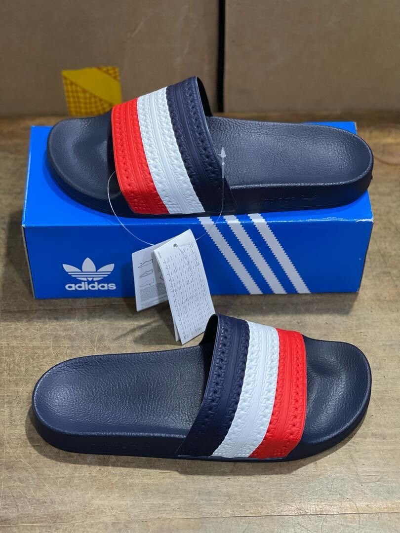 Découvrez les tongs Adidas en bleu, blanc et rouge, parfaites pour un été stylé. Conçues pour le confort, elles sont idéales pour la plage ou la piscine. Un must pour garder vos pieds au frais tout en affichant un look moderne.
