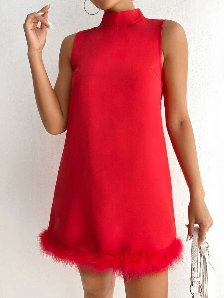 Red Furry Trim Mini Dress