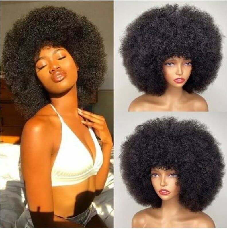 HIHOO Short Afro Wig with Bangs for Black Women Afro Curly W