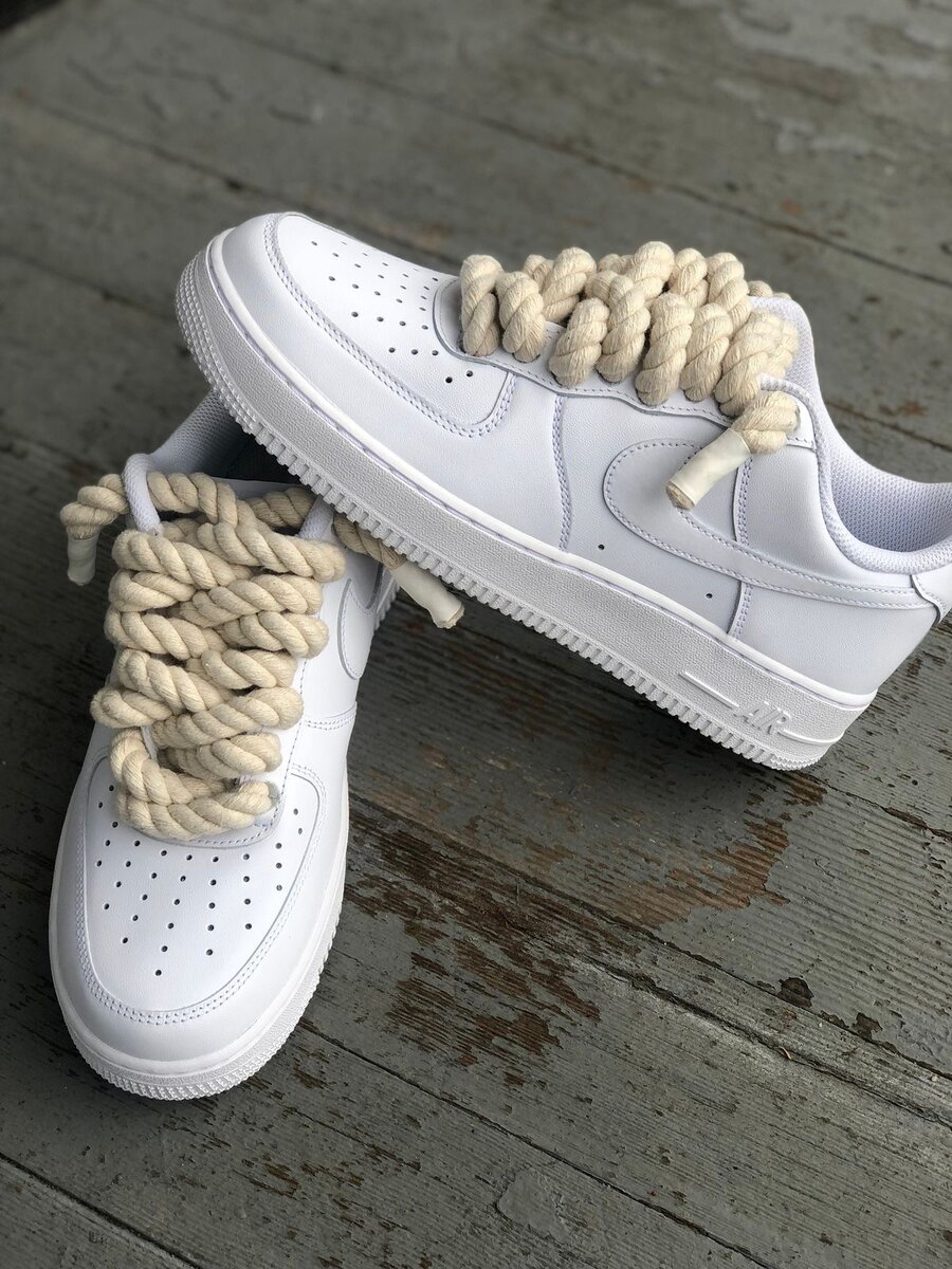 Découvrez ces sneakers blanches avec des lacets en corde distinctifs. Parfaits pour un look tendance et décontracté, ils ajoutent une touche unique à votre style. Idéals pour se démarquer lors de sorties urbaines ou casual.
