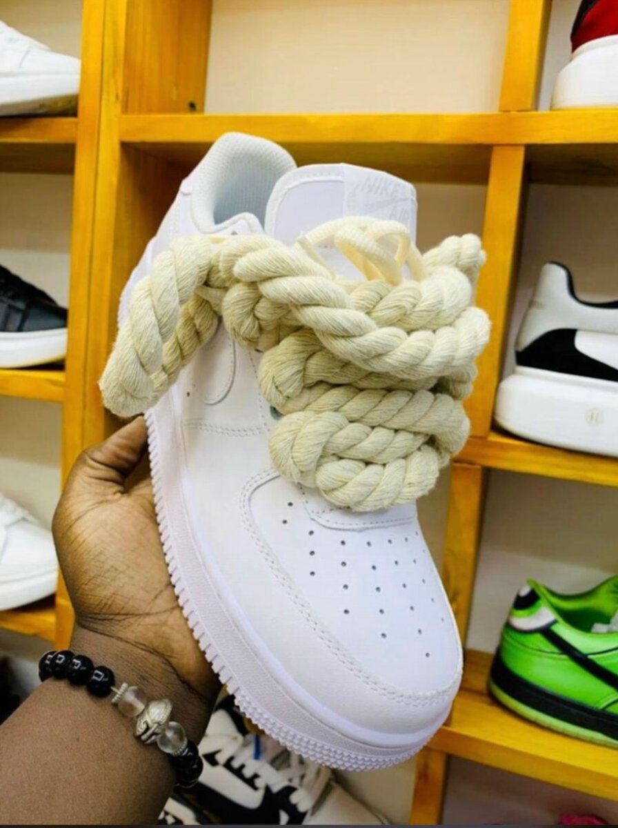 Découvrez ces baskets blanches au design unique avec des lacets en corde épaisse pour un style tendance et décontracté. Parfaites pour ceux qui recherchent la mode et le confort.