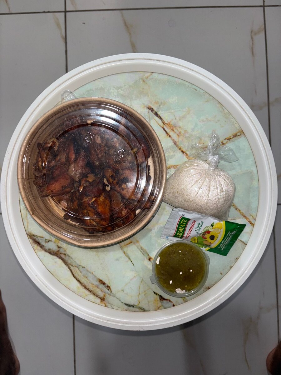 Poulet mariné 24H aux épices du maître cuit au four et caramélisé au miel à foufa en gbonhi (+1 Boule d attiéké)