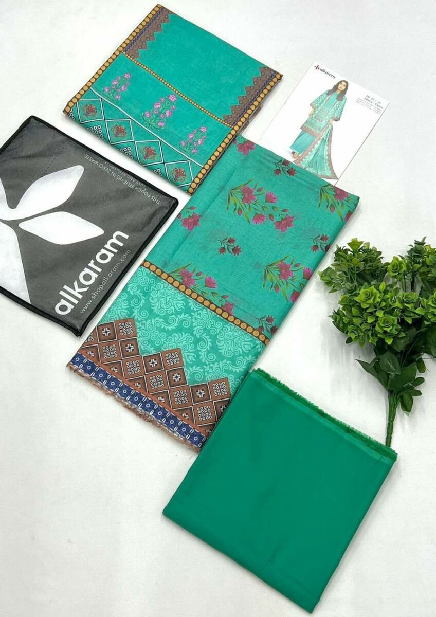 Alkaram 3 pieces 100% origional stock in hand Printed cambric shirt Printed voil dupatta Dyed cambric trouser