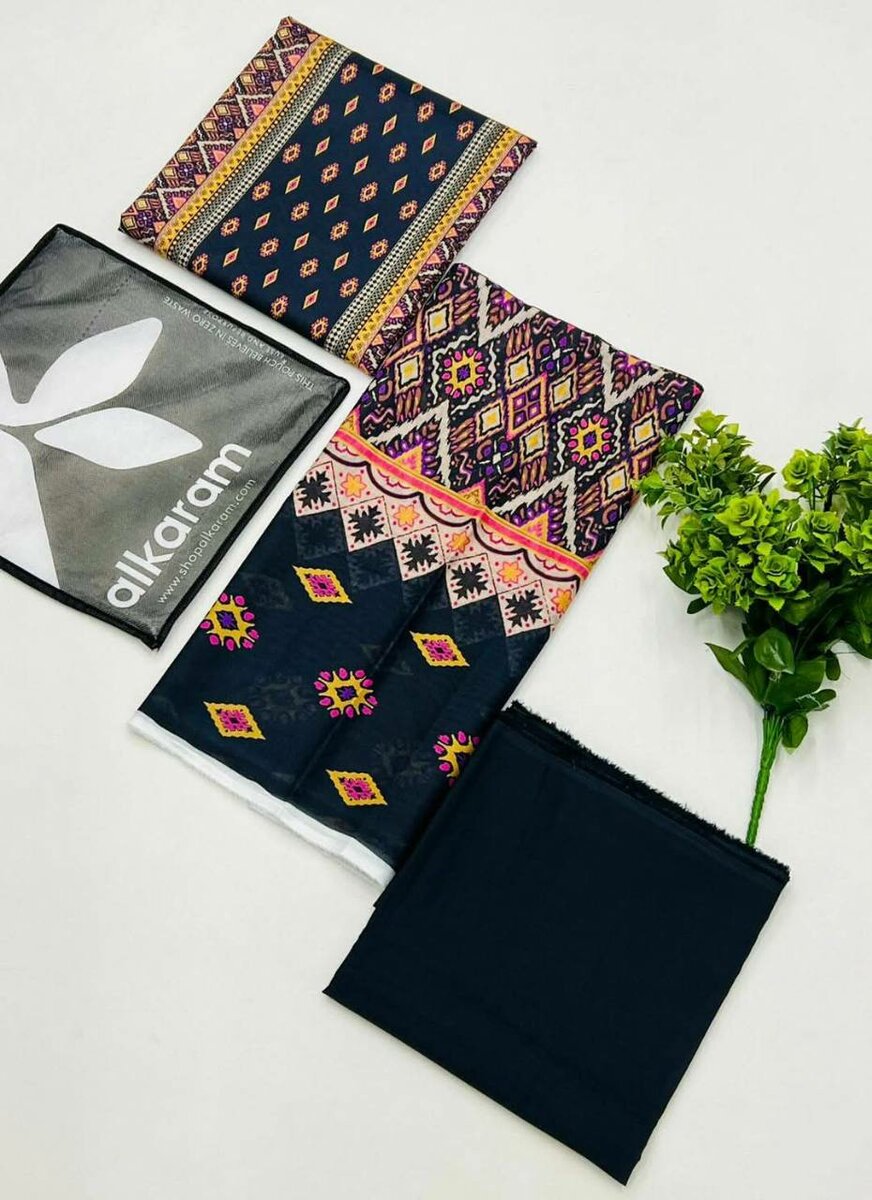 Alkaram 3 pieces 100% origional stock in hand Printed cambric shirt Printed voil dupatta Dyed cambric trouser