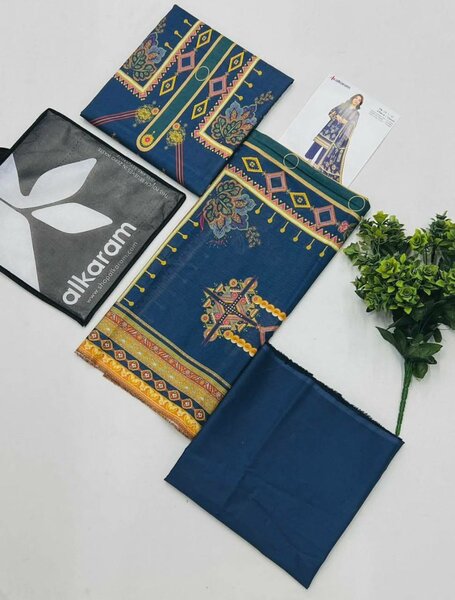 Alkaram 3 pieces 100% origional stock in hand Printed cambric shirt Printed voil dupatta Dyed cambric trouser