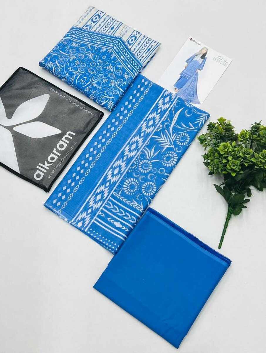 Alkaram 3 pieces 100% origional stock in hand Printed cambric shirt Printed voil dupatta Dyed cambric trouser