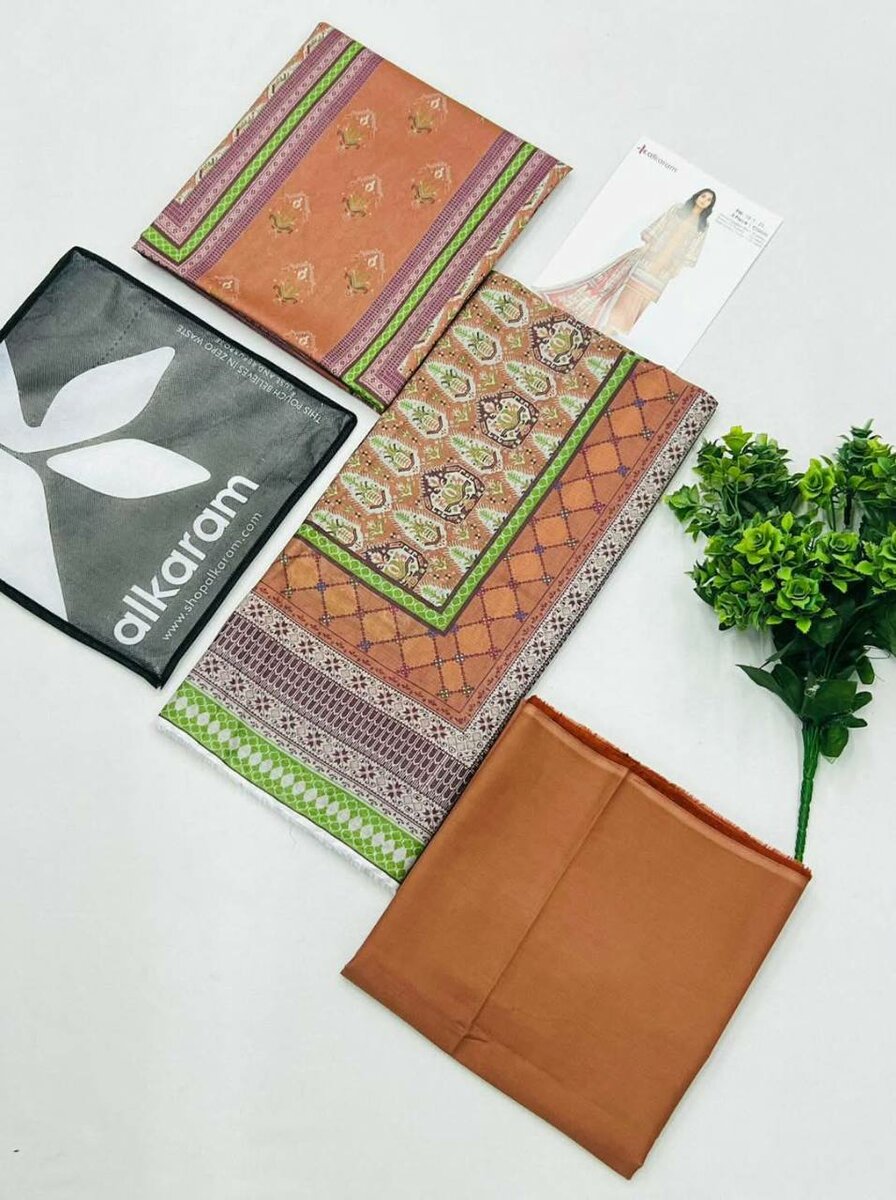 Alkaram 3 pieces 100% origional stock in hand Printed cambric shirt Printed voil dupatta Dyed cambric trouser
