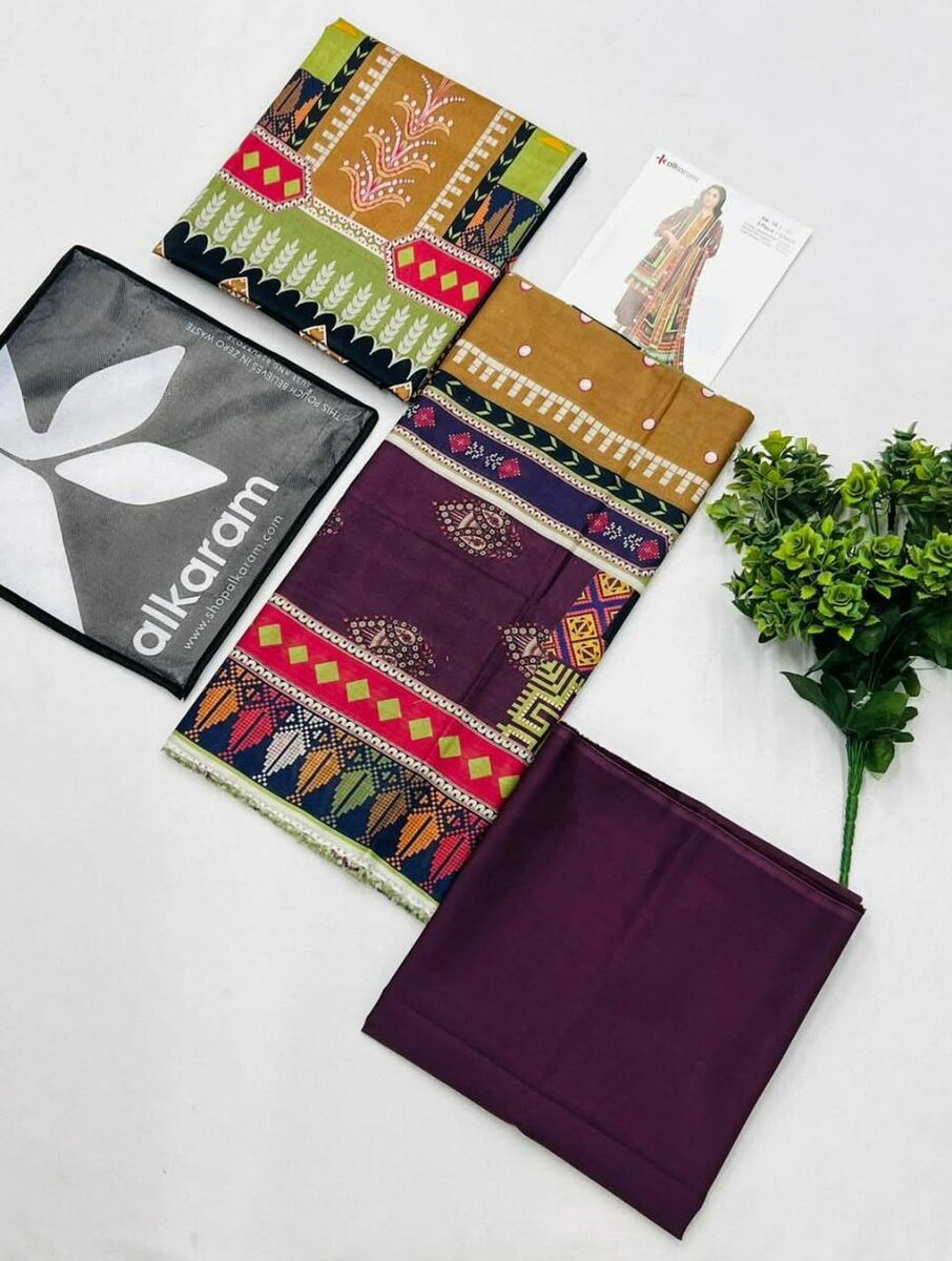 Alkaram 3 pieces 100% origional stock in hand Printed cambric shirt Printed voil dupatta Dyed cambric trouser