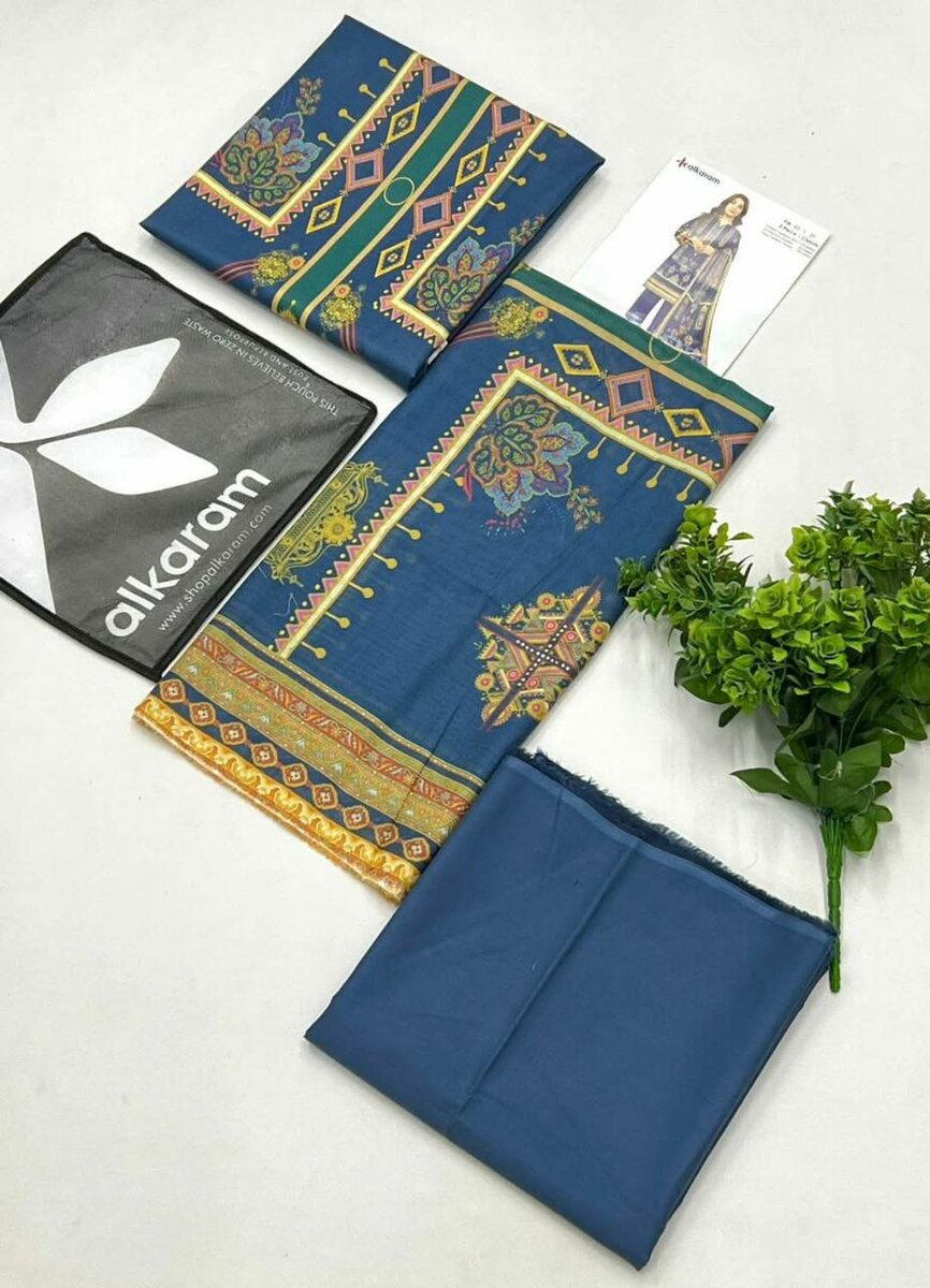 Alkaram 3 pieces 100% origional stock in hand Printed cambric shirt Printed voil dupatta Dyed cambric trouser