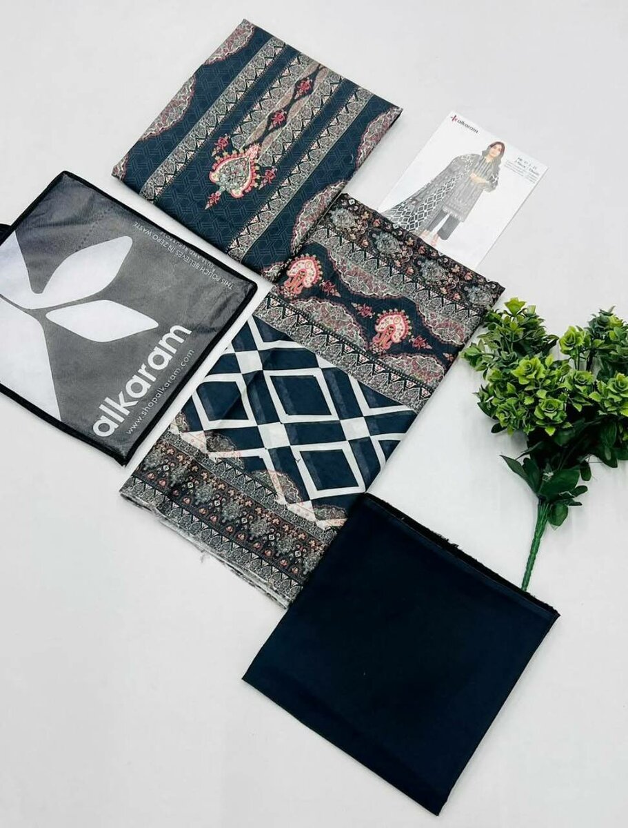 Alkaram 3 pieces 100% origional stock in hand Printed cambric shirt Printed voil dupatta Dyed cambric trouser