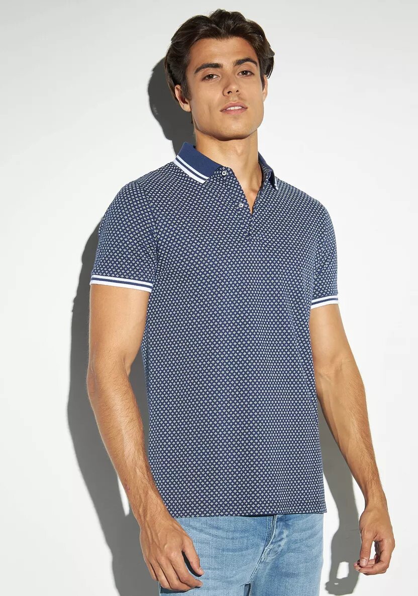 All-Over Geometric Print Polo T-shirt with Short Sleeves