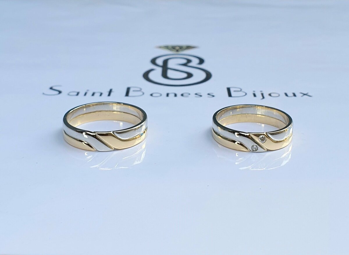 Bague alliances diamanté deux or ( Or jaune Or blanc ) 18k