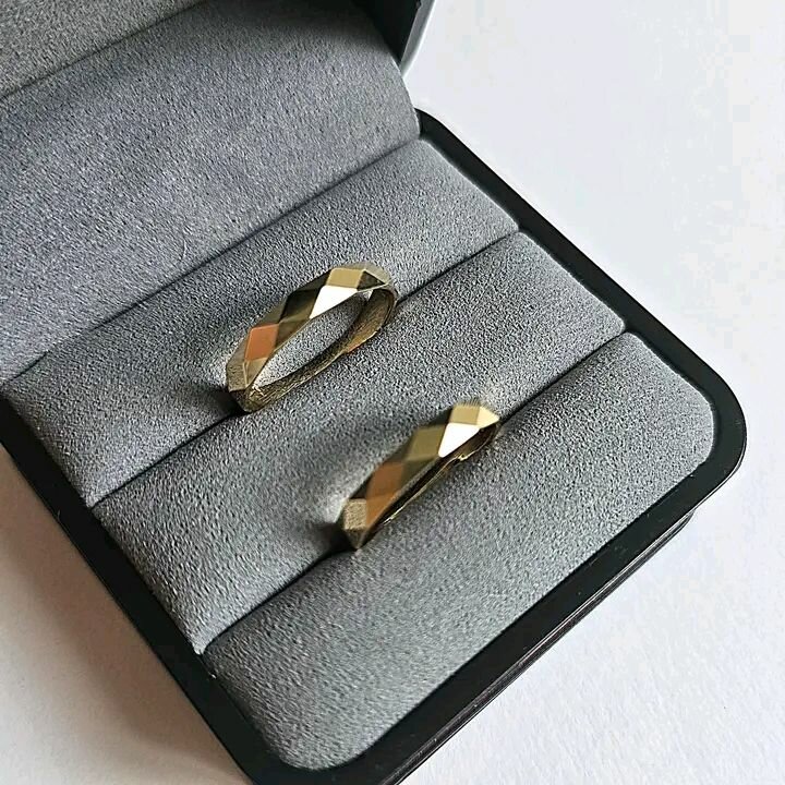 Découvrez ces élégantes alliances en or facetté, parfaites pour célébrer votre engagement avec style. Leur design unique et moderne les rend idéales pour ceux qui recherchent une touche originale à leur cérémonie. Une brillance exceptionnelle et une finition de haute qualité assurent un éclat durable. Faites de ce moment spécial un souvenir inoubliable avec ces bagues raffinées.