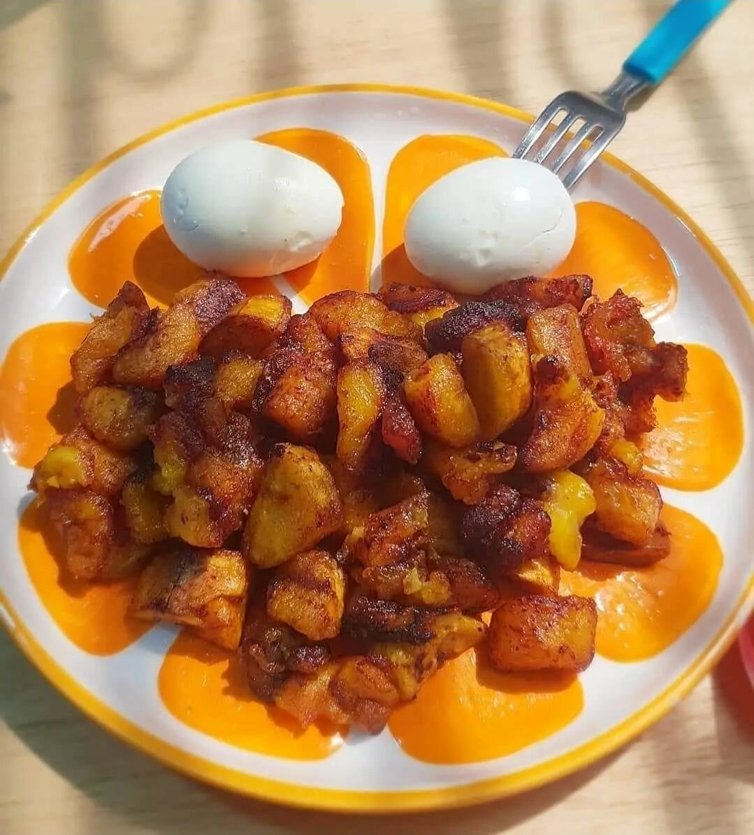 Alloco délicieux grillé avec amour légèrement caramélisé pour un goût sucré et naturel qui respectera vos papilles accompagné de deux(2) œufs durs et quatre (4) pattes de poulets