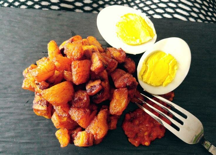 Savourez ces délicieux plantains frits servis avec des œufs durs. Parfait pour un déjeuner ou un dîner exotique. Les plantains sont croustillants et dorés, tandis que les œufs ajoutent une touche de protéine à ce plat savoureux. Une combinaison idéale pour un repas équilibré.