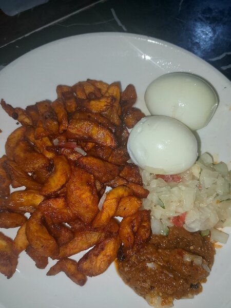 Ignames Frits avec Oeufs et Sauce