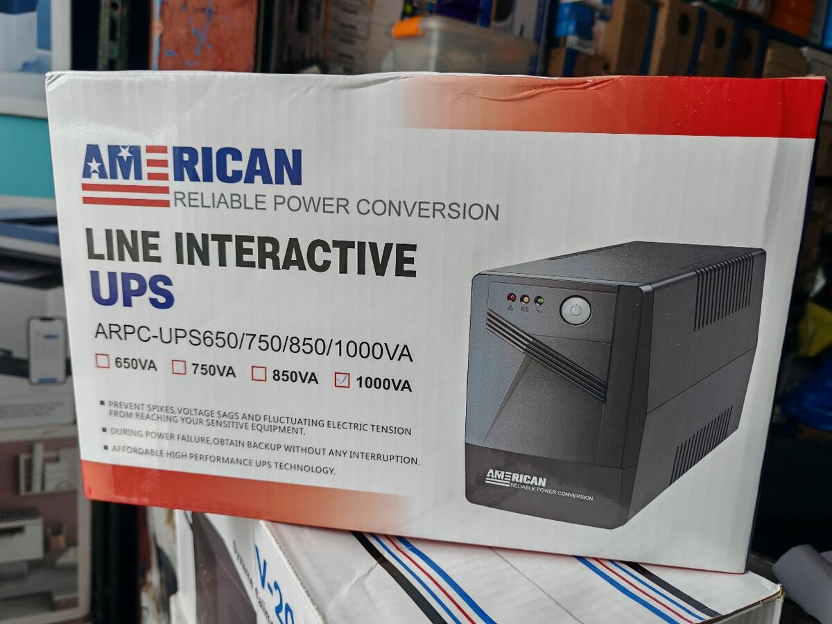 UPS Line Interactive AMERICAN avec 1000VA pour protéger vos appareils des surtensions électriques. Idéal pour ordinateurs et équipements sensibles avec technologie de sauvegarde de batterie.