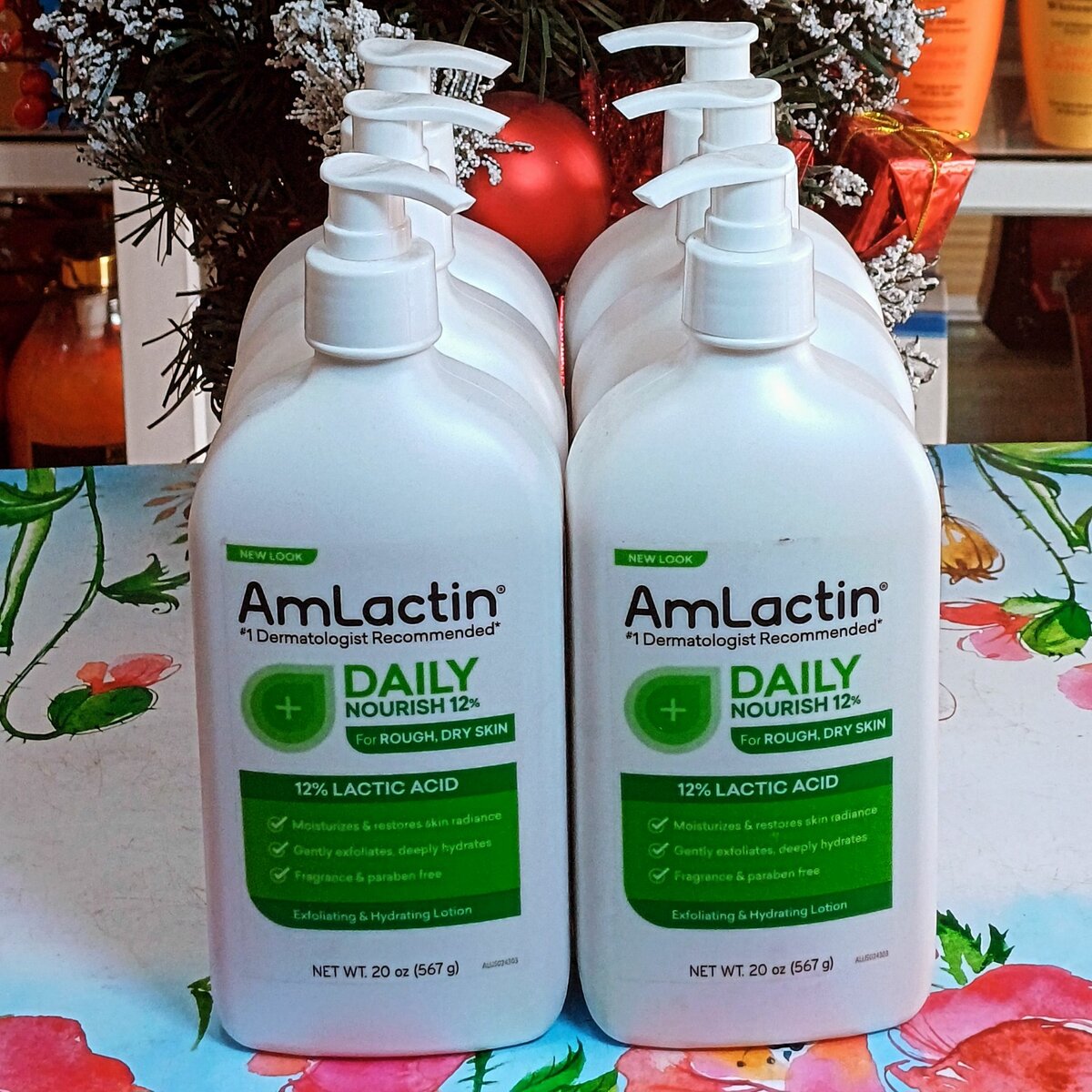 PRODUCT NAME: AMLACTIN DAILY NOURISH DESCRIPTION: The moisturizing lotion contains clinically proven 12% lactic acid that boosts the skin's natural renewal process through gentle exfoliation. Use daily to reveal softer, smoother skin.