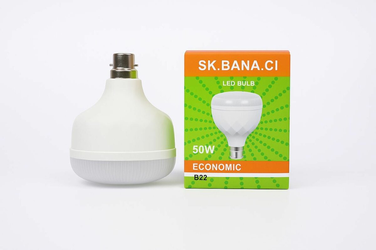 Ampoule LED SK.BANA.CI de 50W avec culot B22, économique et durable. Économie dénergie jusquà 85% Longue durée de vie Lumière blanche brillante et confortable