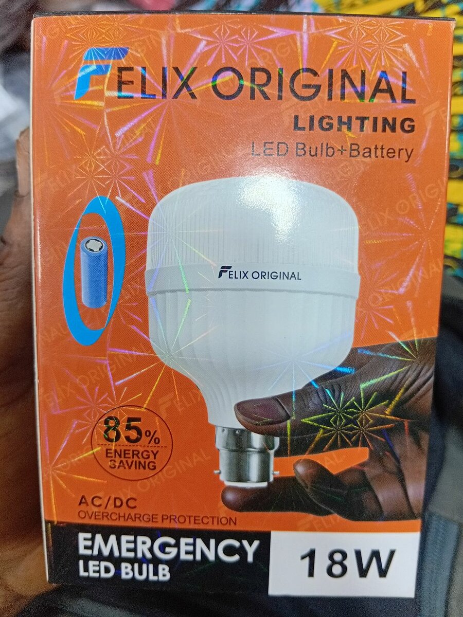 Ampoule LED d'urgence 18W avec batterie intégrée et protection contre les surcharges. Idéale pour les pannes électriques avec 85% d'économie d'énergie.