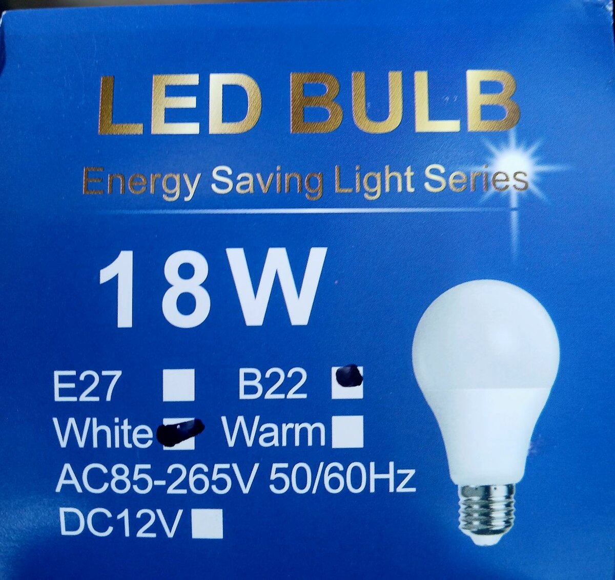 Ampoule LED 18W à haute efficacité énergétique. Compatible avec culots E27 et B22. Offre une lumière blanche chaude et consomme peu d'énergie (AC85-265V). Idéale pour une utilisation domestique, économique à 90%.