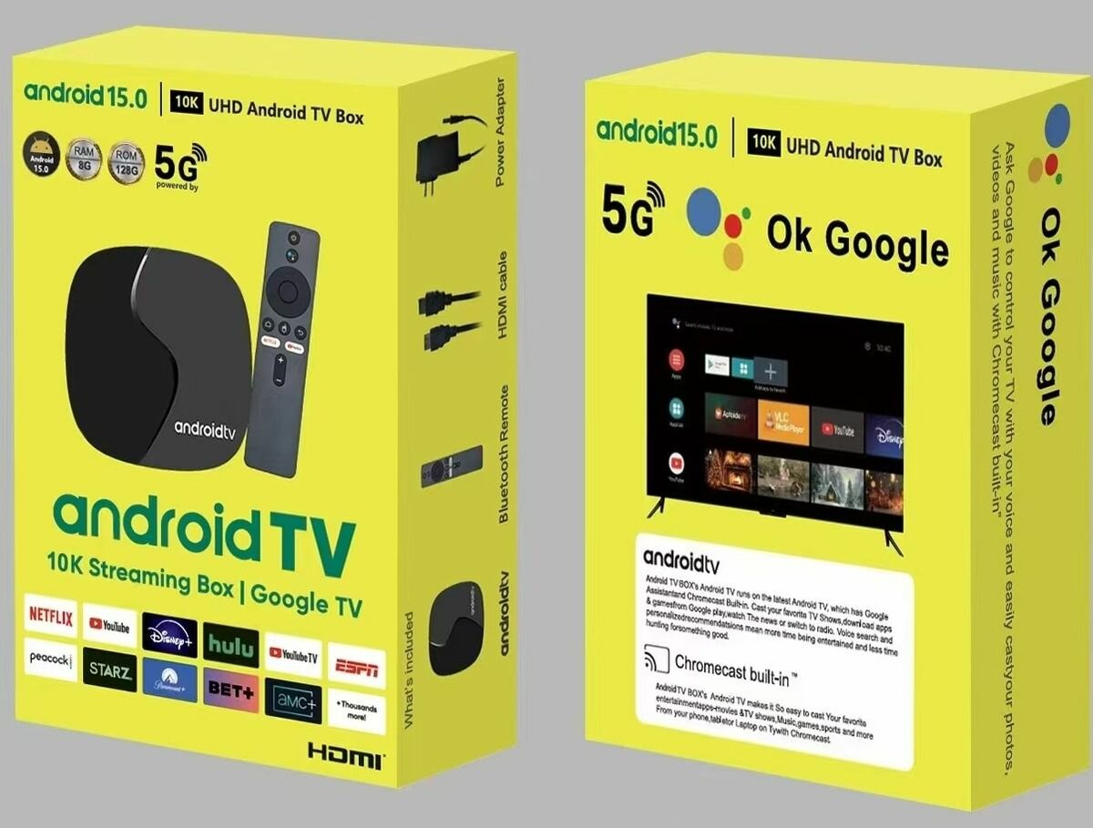 Transformez votre TV avec Android TV Box 10K UHD ! Profitez de contenus en streaming 5G fluides grâce à Google TV intégré et Chromecast. Idéal pour Netflix, Prime Video et plus. Haute qualité d'image et connectivité rapide pour une expérience de divertissement inégalée.