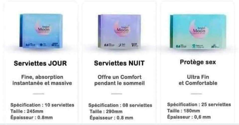 Serviettes périodiques et protege slip qui previent, éradique les bobos et prend soin de l intimité féminine.