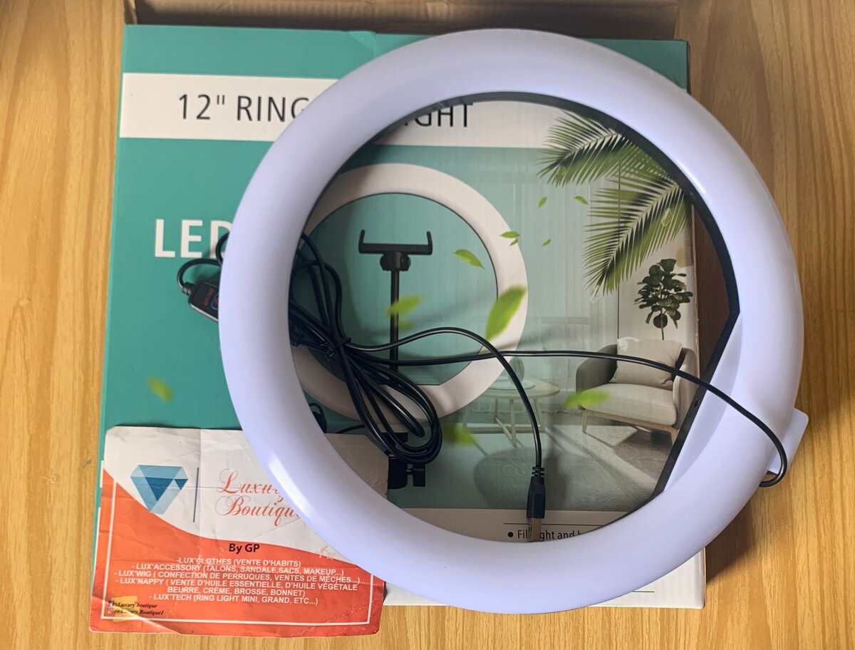 Éclairez vos vidéos avec cet anneau lumineux LED de 12 pouces, idéal pour le maquillage, les vlogs ou les conférences. Réglable en hauteur et doté d'une télécommande pratique, il offre un éclairage parfaitement diffus.