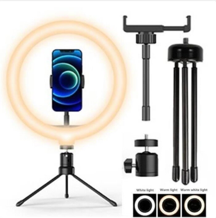 Optimisez vos selfies et vidéos avec cet anneau lumineux LED ajustable. Parfait pour le maquillage, les vlogs ou les appels vidéo, il offre une lumière blanche et chaude, s'alimente via USB et se monte facilement sur un trépied rotatif à 360°.