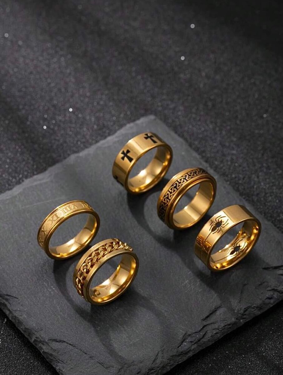 Découvrez nos élégants anneaux en acier inoxydable doré, parfaits pour sublimer votre style. Ces bagues robustes et élégantes sont idéales pour un usage quotidien ou des occasions spéciales. Soyez audacieux avec différents motifs gravés, parfait pour ceux qui aiment affirmer leur identité avec style.