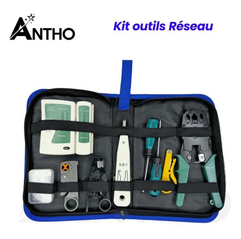 ANTHO Kit réseau informatique - Pince à sertir - testeur - RJ-45 - connecteur - dénudeur