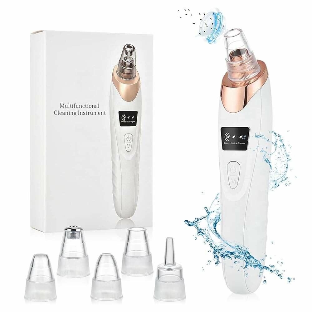 Appareil d'aspiration pour visage offrant un nettoyage en profondeur et élimination des impuretés. Réduit l'acné, les points noirs et resserre les pores pour une peau lisse. Idéal pour tous types de peau.