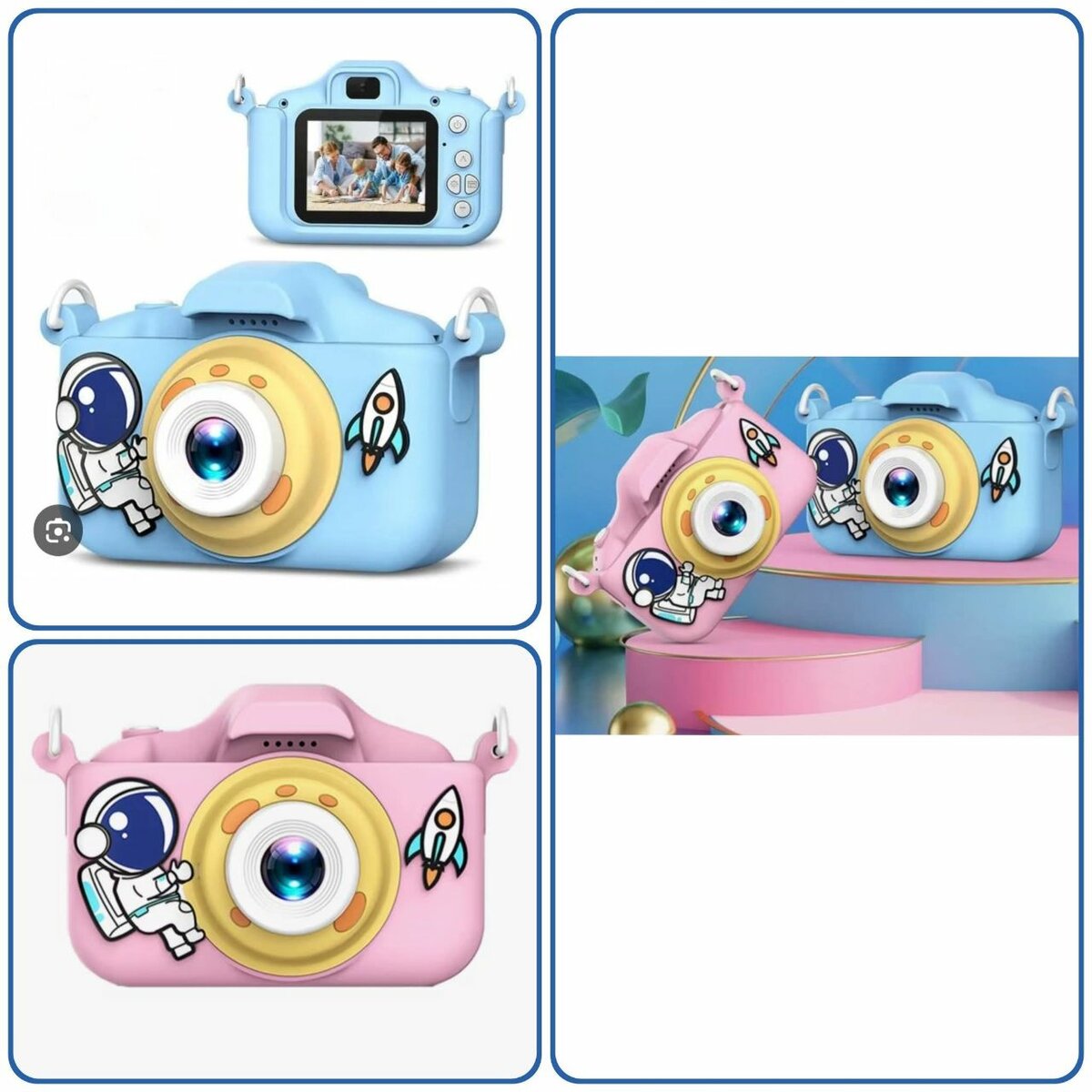 Appareil photo numérique pour enfants avec design amusant de l'espace. Capturez des moments précieux avec cet appareil facile à utiliser, idéal pour les jeunes photographes en herbe. Disponible en couleur bleue et rose, il est parfait pour les aventures et les voyages.
