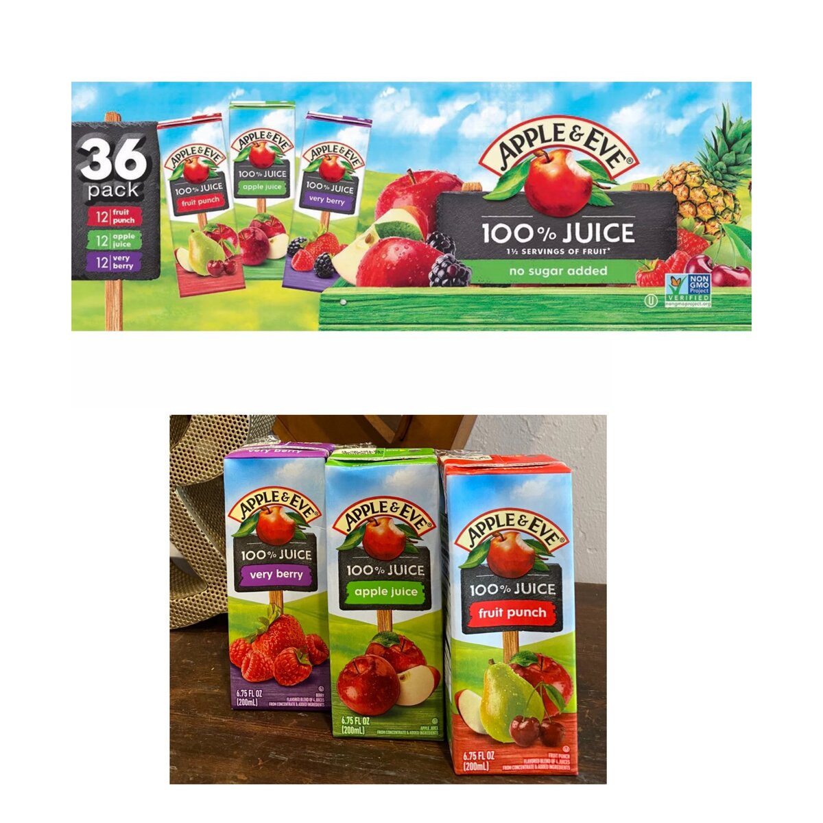 Enjoy the natural taste with Apple & Eve 100% Juice Variety Pack. This 36-pack offers a delicious blend of flavors including Apple, Very Berry, and Fruit Punch, all with no added sugar. Perfect for on-the-go refreshment, these juices are a healthy choice for lunchboxes, picnics, and family outings. Ideal for kids and adults alike who love a fruity boost!