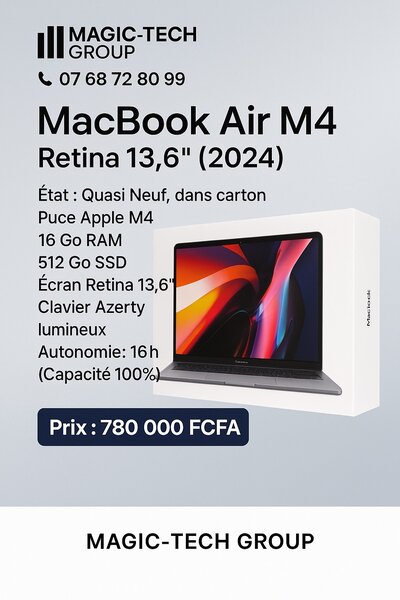 Découvrez la puissance et l'élégance de l'Apple MacBook Air 13". Son design fin et léger le rend idéal pour les déplacements. Avec un écran Retina éclatant et une performance fluide, c'est l'outil parfait pour les professionnels en mouvement. Profitez d'une autonomie impressionnante et d'une connectivité avancée.