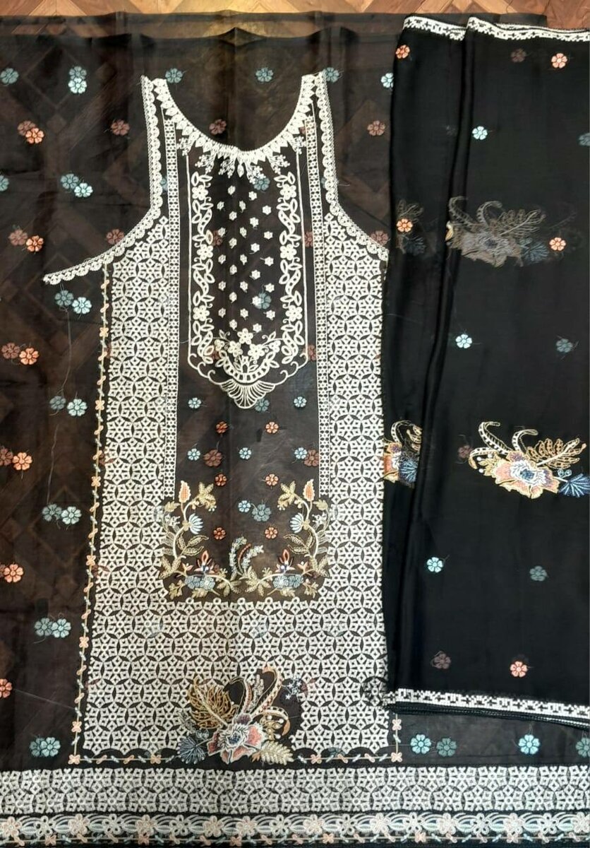 Stunning women's Stitched embroidery organza 3 pcs suit