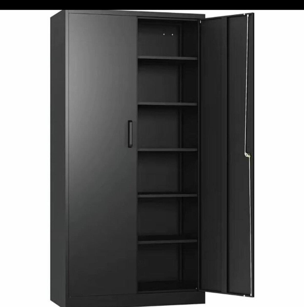 Armoire moderne avec portes battantes et étagères intérieures. Idéale pour organiser votre espace de vie ou de travail. Finition noire et design épuré.