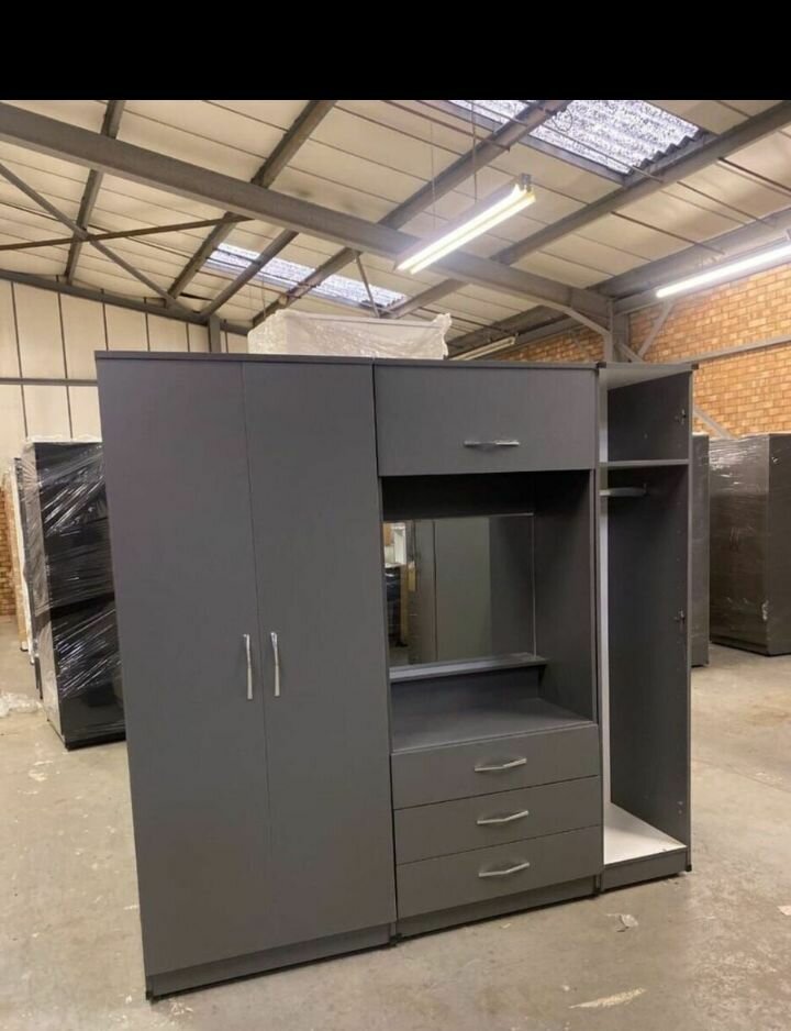 Découvrez cette armoire dressing grise moderne, idéale pour organiser votre garde-robe avec style. Dotée de multiples rangements, elle convient parfaitement aux chambres contemporaines.