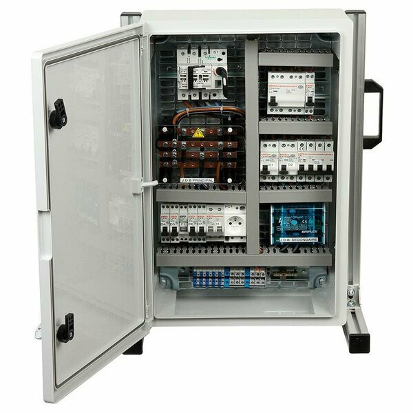 Armoire industrielle de distribution électrique, conçue pour assurer la gestion et la sécurité des circuits d'alimentation en milieu industriel. Prête à installer, robuste et conforme aux exigences de sécurité électriques.