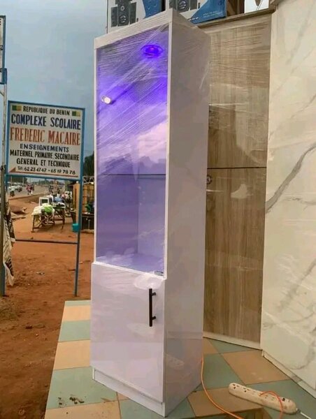 Optimisez votre espace avec cette armoire moderne à la finition marbrée. Idéale pour le rangement de votre chambre, elle offre des étagères et tiroirs pratiques.