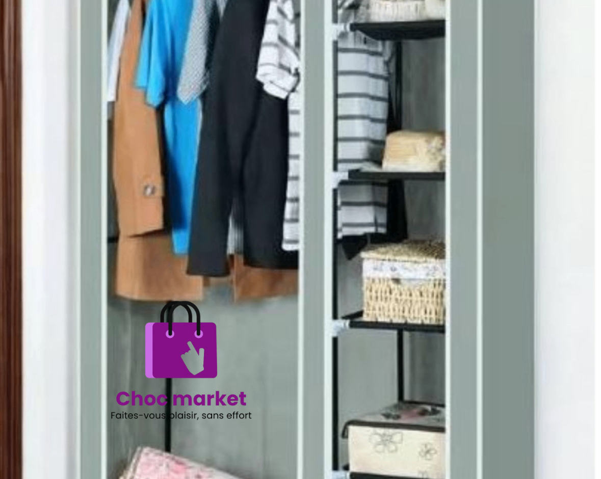 Optimisez votre espace avec cette armoire penderie en tissu. Idéale pour les petits espaces, elle offre rangement et organisation pour vos vêtements et accessoires. Légère et facile à monter, cette armoire est un choix parfait pour les chambres, les dortoirs ou les appartements. Profitez d'un rangement élégant et fonctionnel.