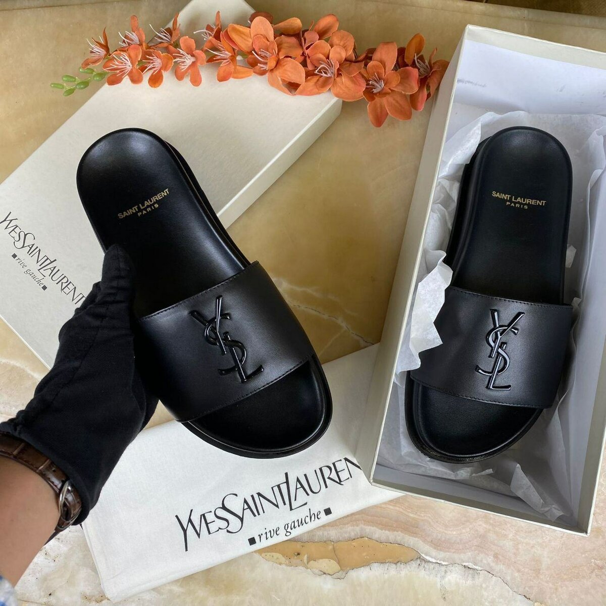 Sandales noires en cuir
