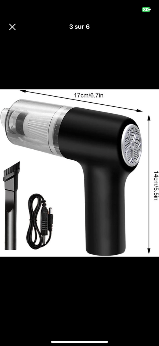 [10000pa Forte Aspiration] Laspirateur de voiture portable a une forte aspiration 10000pa, adapté aux travaux ménagers quotidiens pour nettoyer la poussière. Le moteur super-puissant de 120W fournit une forte aspiration jusquà 10000pa, qui peut rapidement et facilement éliminer les résidus de nourriture, les particules, les poils danimaux autour de la maison ou dans la voiture. Humide/sec vacuumwireless opération mobile plus commode.