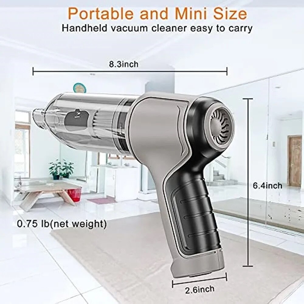 "Notre aspirateur sans fil rechargeable vous offre une solution de nettoyage polyvalente. Avec sa batterie longue durée (6000mAh), il vous permet d'aspirer les poussières, les poils d'animaux dans votre voiture, votre maison, et même de nettoyer les recoins de votre clavier d'ordinateur."