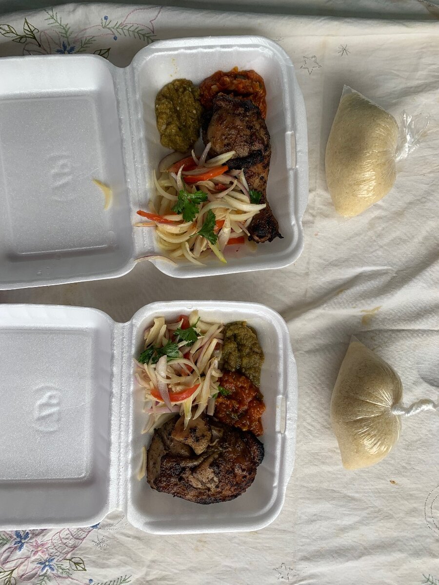 Savourez notre assiette d'attiéké poulet braisé, accompagnée de légumes épicés et de délicieuses sauces maison. Parfaite pour un repas copieux et plein de saveurs exotiques. Idéale pour les amateurs de cuisine africaine.
