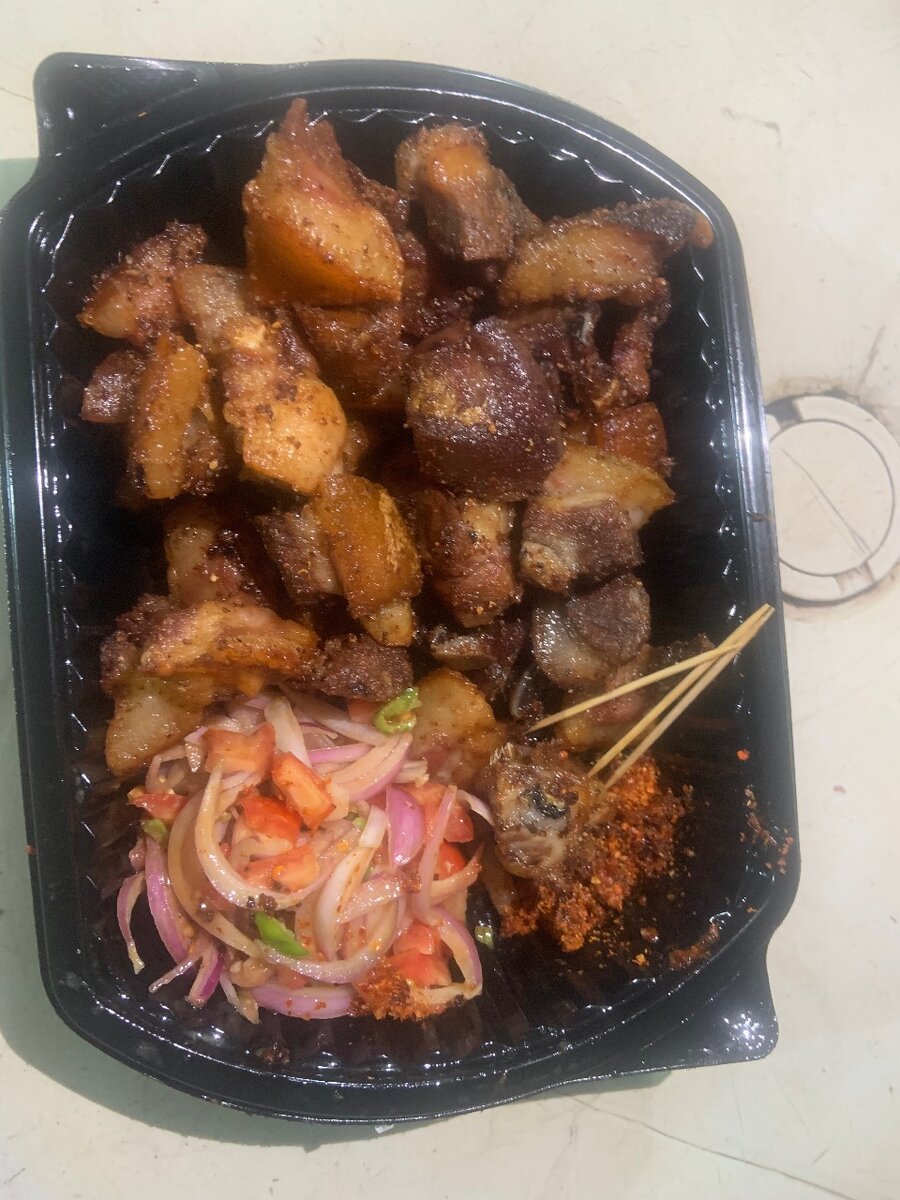 Découvrez notre délicieuse assiette de porc épicé, africain et autre ,accompagnée d'une salade croquante et d'épices savoureuses. Parfait pour un repas rapide ou une soirée entre amis. Profitez de saveurs intenses et authentiques. Idéal pour les amateurs de viande!