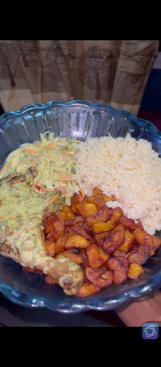 Savourez un repas exotique avec notre assiette composée de poulet tendre, attiéké et de la banane plantains frits. Parfaite pour un déjeuner qui combine saveurs et textures uniques pour vous transporter dans un voyage culinaire.