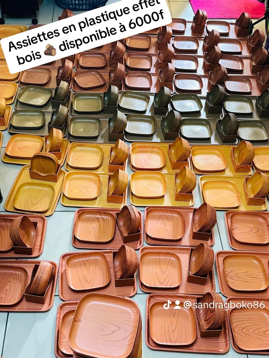 1 plateau+ Une grande assiette+ 1 socle rangement+ 8 petites assiettes Le tout à 6.000f