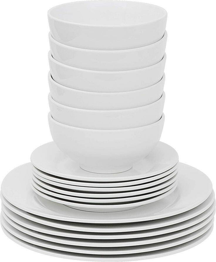 Ensemble élégant d'assiettes et de bols en céramique blanche, parfait pour la table moderne. Durable et facile à entretenir, idéal pour un usage quotidien.