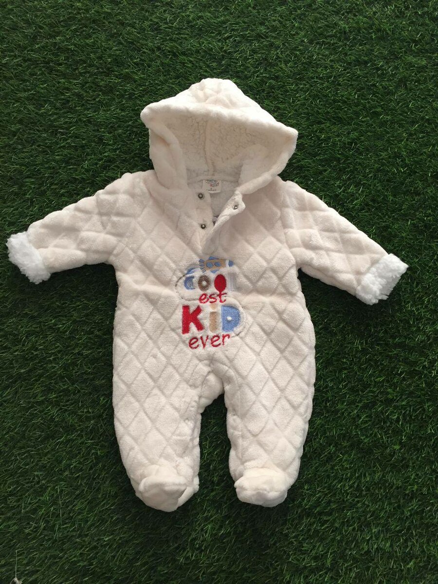 Fluffy white jumpsuit with ears on the hood, 6-12m